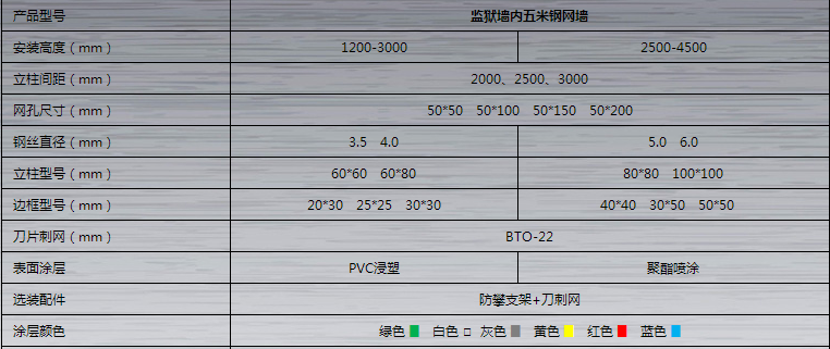 監(jiān)獄鋼網(wǎng)墻按照樣式與規(guī)格可細(xì)分為:鋼筋焊接式鋼網(wǎng)墻,鋼板拉伸式鋼網(wǎng)墻,刀刺網(wǎng)鋼網(wǎng)墻,太陽花刺鋼網(wǎng)墻,梅花刺鋼網(wǎng)墻。