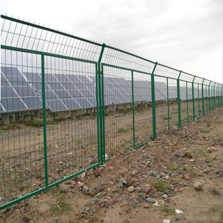 太陽光發電站圍欄采用采用低碳鋼絲作為原材料,表面浸塑具有日久抗腐蝕、抗紫外線不怕雨淋的特點。這種工藝有無需模具、加工成本低、成型容易、可加工各種外形等特點被廣范使用。是專門為光伏電站設計的防護設備,主要是用在光伏電站各個區域的防護和隔離.它有效防止了變電站內外的人身安全和變電器等設備的防盜,是光伏電站重要的防護產品。