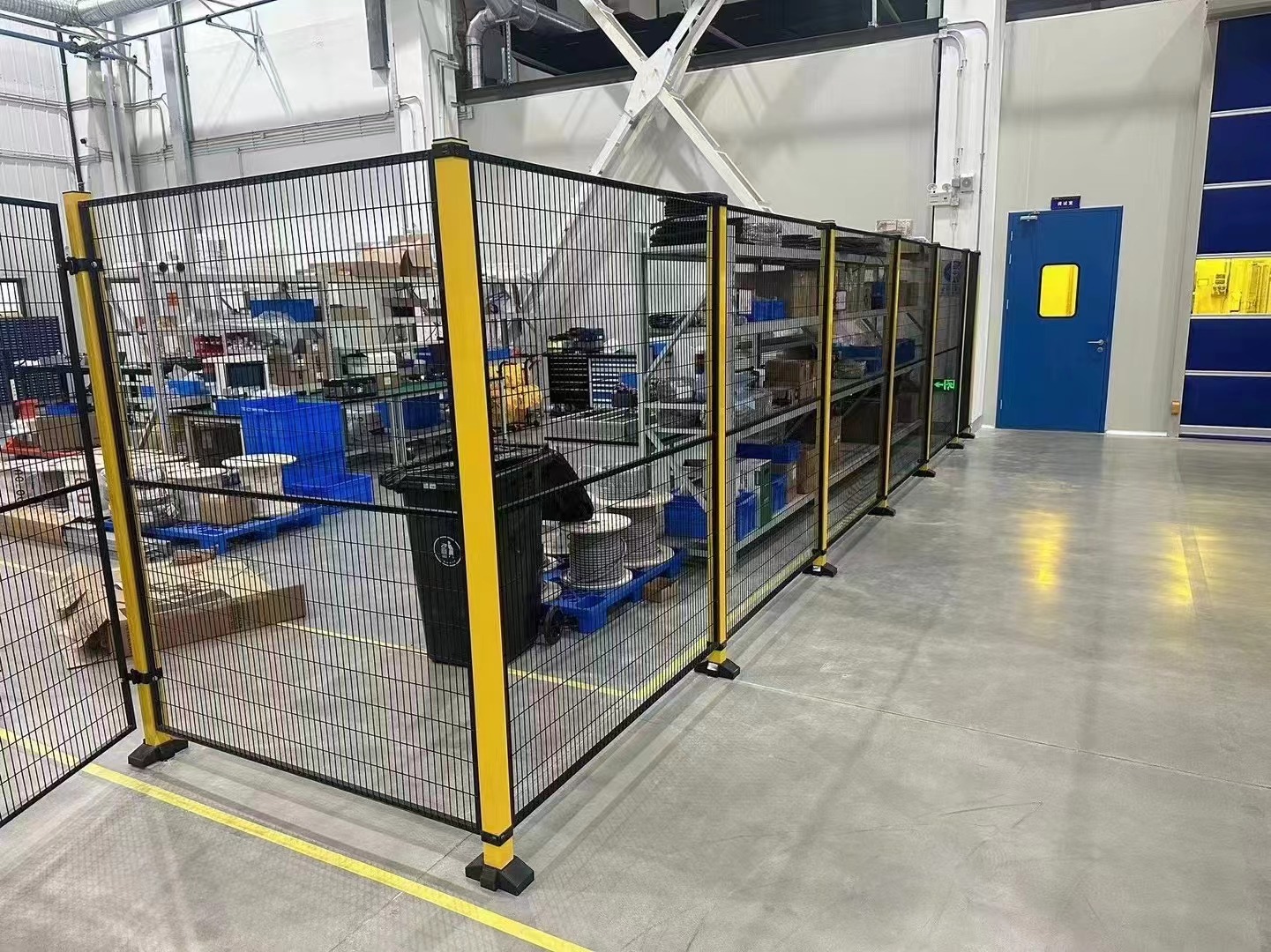 車間機器隔離護欄網的網體采用卡扣式鋼架灌縫網格,具有高度的透明度,不會對車間內部的視線造成影響,減輕視覺壓力,使得車間的空間感覺更加舒適。