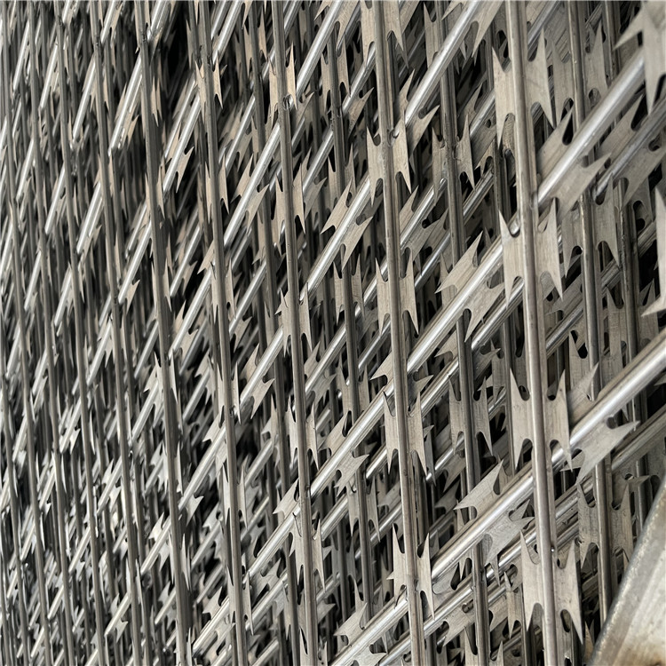 • 附加組件:在焊接網(wǎng)的上部或兩側(cè),通過專用支架或直接焊接固定刀片刺繩(刀片刺網(wǎng))
