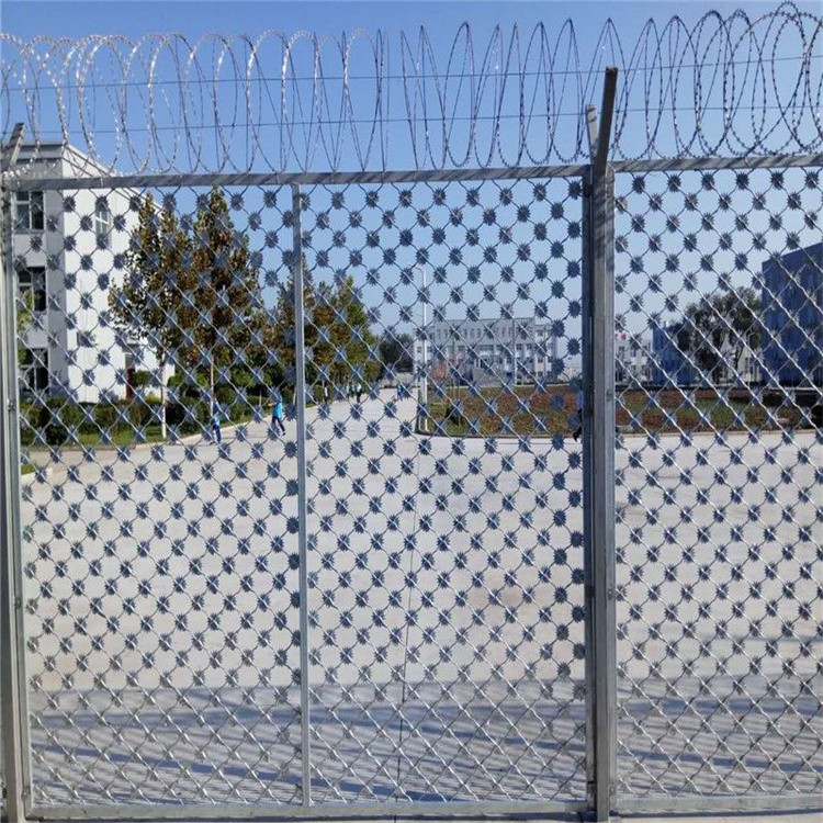 欄網(wǎng)的Y形柱還裝備了不銹鋼刀片刺網(wǎng),并對其外表進(jìn)行了噴涂。常見的是深綠色噴涂和銀灰色噴涂,看起來高端,簡單而美麗,并且能夠